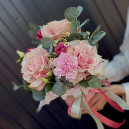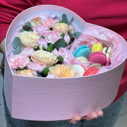 Коробка Тоскана из эустомы, кустовых и одноголовых роз, диантуса и альстромерии