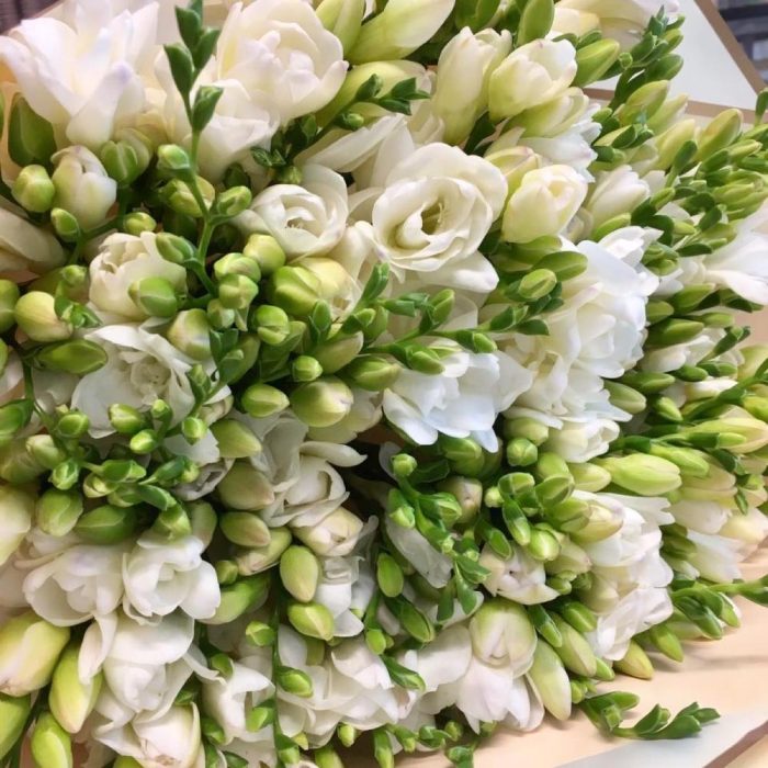 Фрезия – 51 шт.Упаковка дизайнерская – 1 шт.Лента атласная – 1 шт.