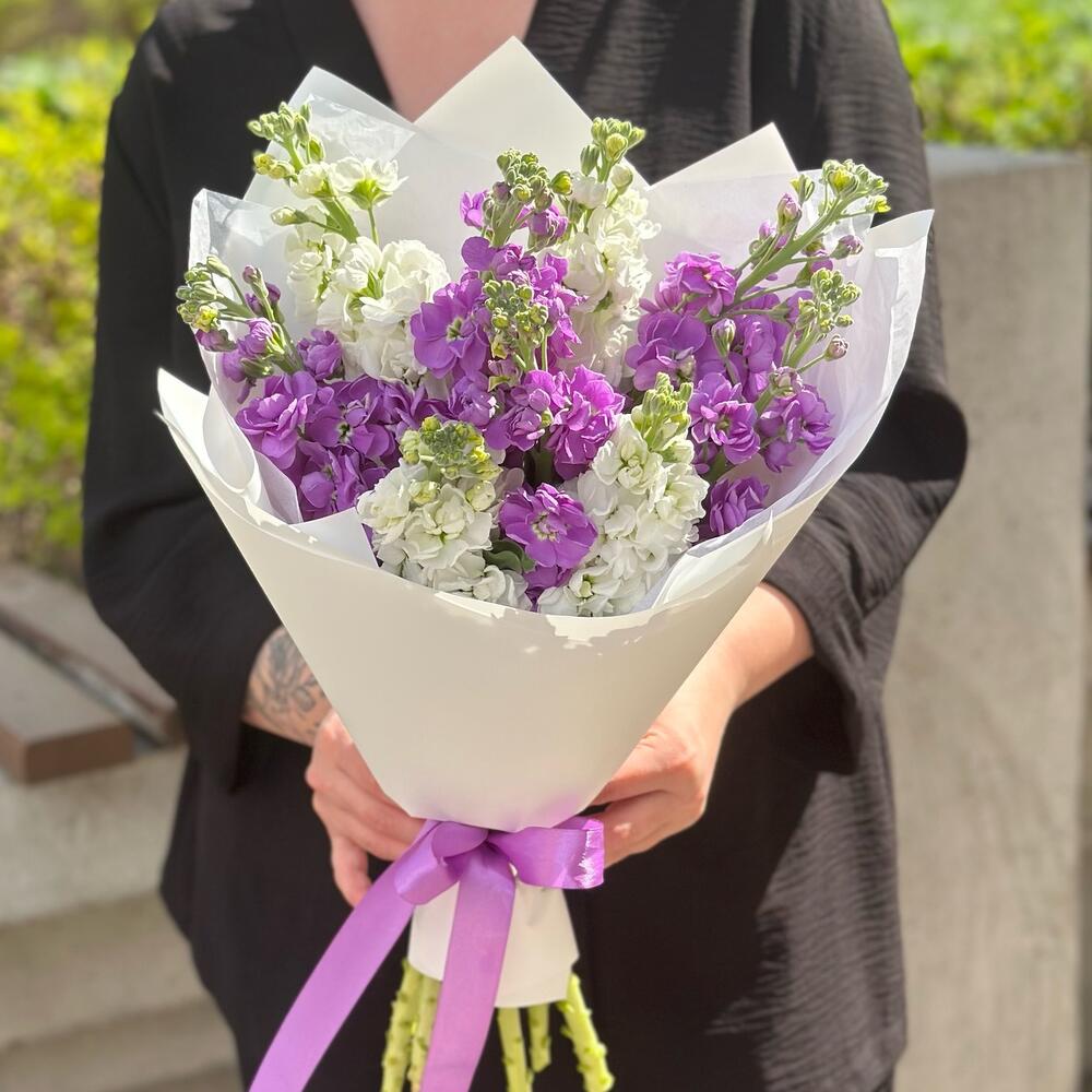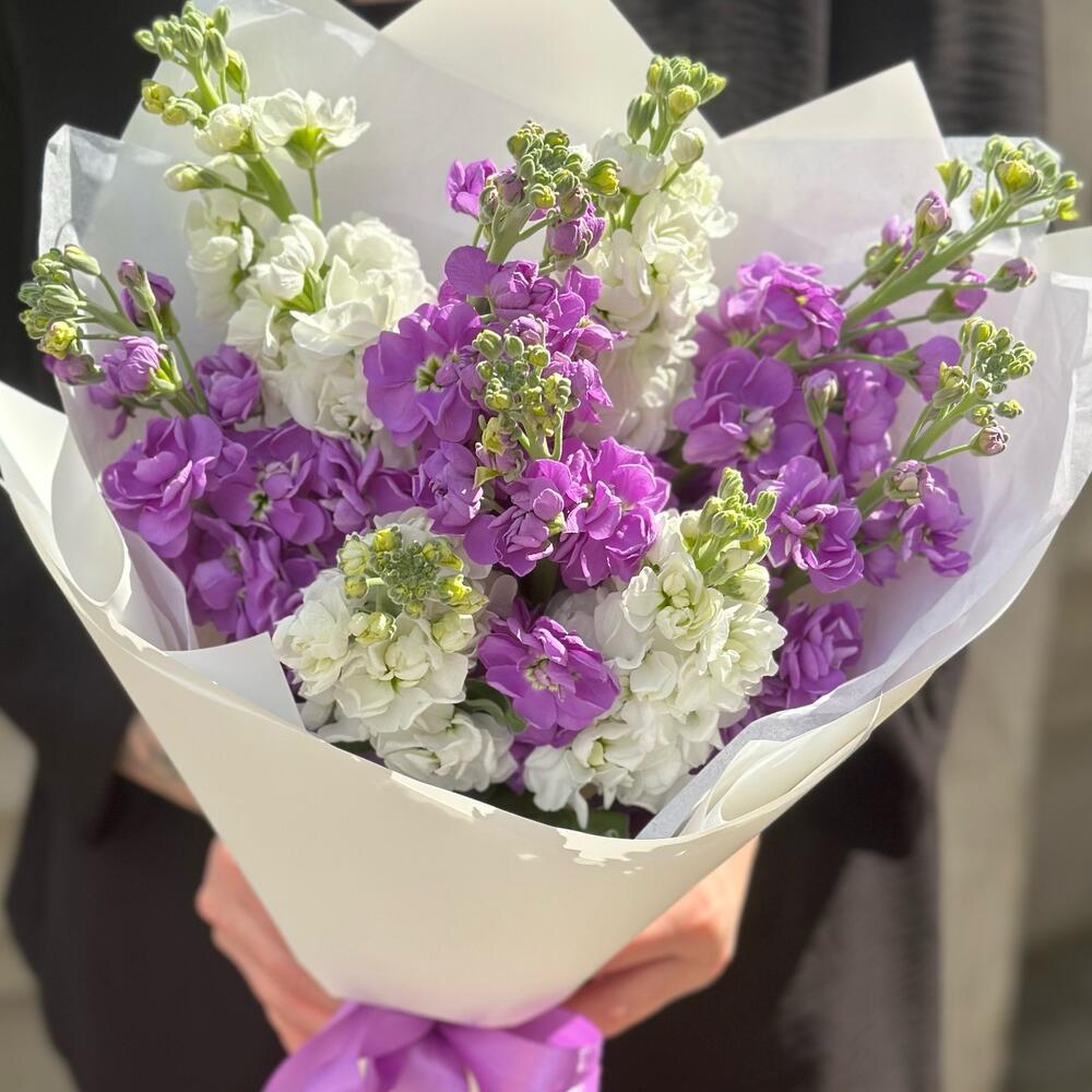 Маттиола – 9 шт.Лента атласная – 1 шт.Упаковка дизайнерская – 2 шт.