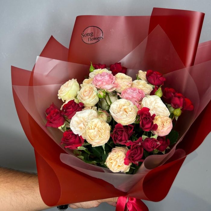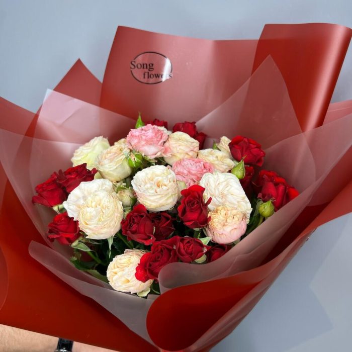 Гвоздики, Кустовые розы, Лизиантусы, Пионовидные розы, Розы