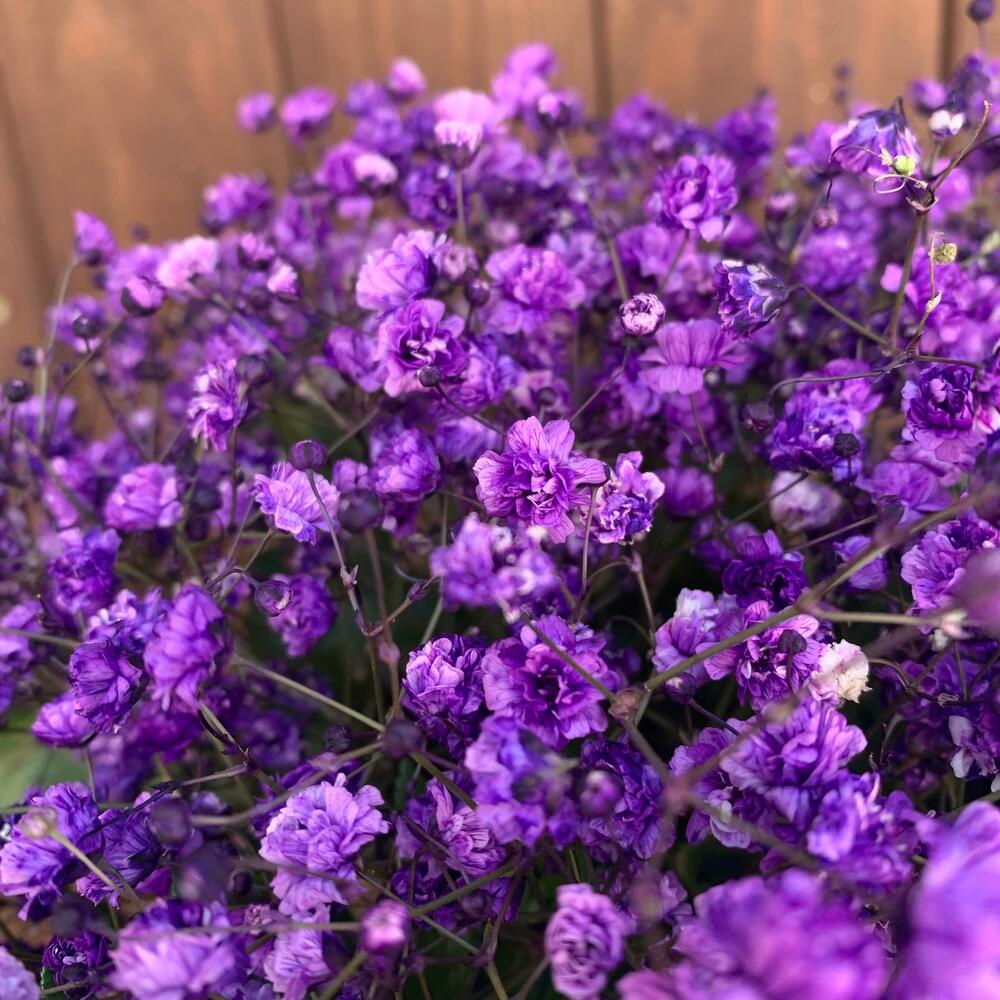 Букет из фиолетовой гипсофилы в шляпной коробке