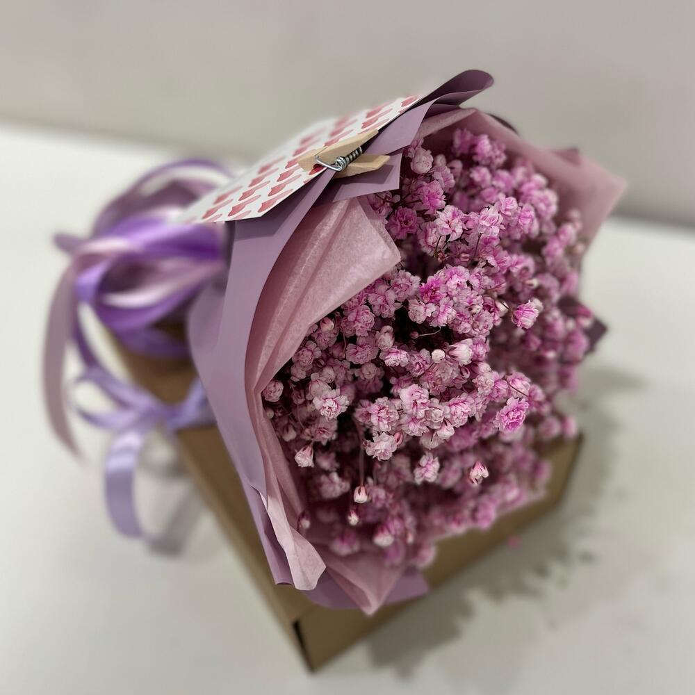 «Лавандовое созвездие» Букет из розы, гвоздики, статица и хлопка