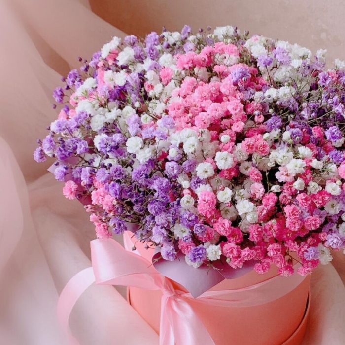 Очаровательная композиция из изысканных свежих цветов.Наполнена множеством соцветий радужной гипсофилы. Собрана в стильной шляпной коробке.Композиция из гипсофилы – необычный подарок, который удивит своей невероятной стойкостью, при правильном и простом уходе.❤️ Ставить композицию в прохладном месте, избегая отопительных приборов и прямых солнечных лучей. ❤️ Подливать немного воды в серединку.Гипсофила не вянет, а становится сухоцветом, сохраняя свой вид. Поэтому композиция продолжит радовать ещё очень долго!Почему выбирают нас? – Работаем на качество. – Бережно упакуем в транспортировочную пленку, чтобы защитить во время доставки от любых погодных условий. – Приложим инструкцию, как правильно ухаживать за цветамиСохраняйте товар в подборках, чтобы не потерять