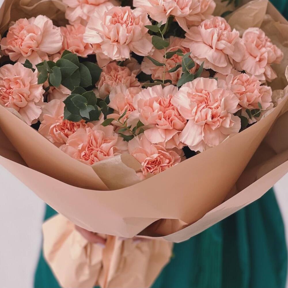Диантус – 19 шт.Эвкалипт – 2 шт.Упаковка дизайнерская – 1 шт.