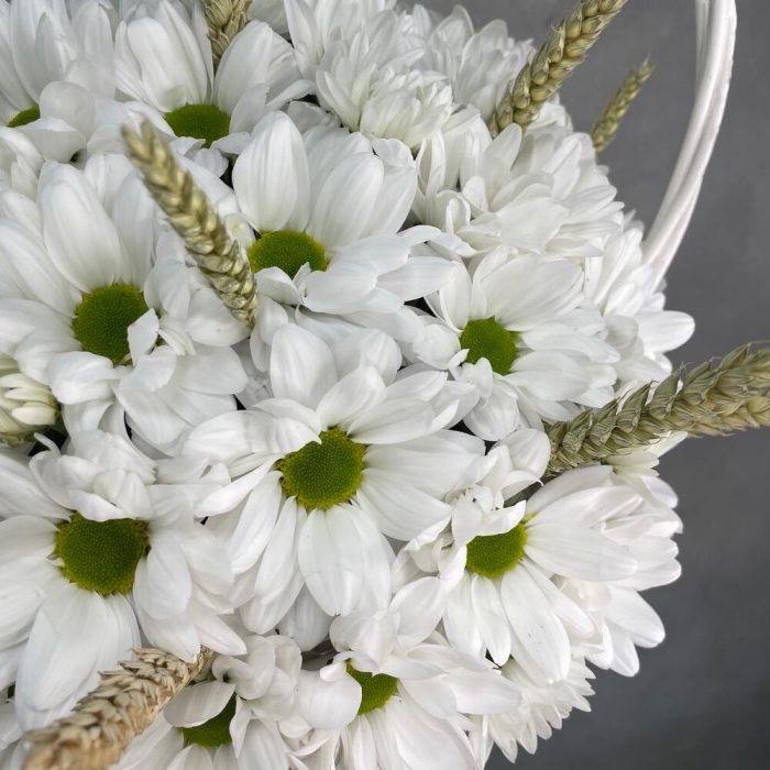 Корзина – 1 шт.Оазис – 2 шт.Пшеница – 20 шт.Хризантема Бакарди – 9 шт.