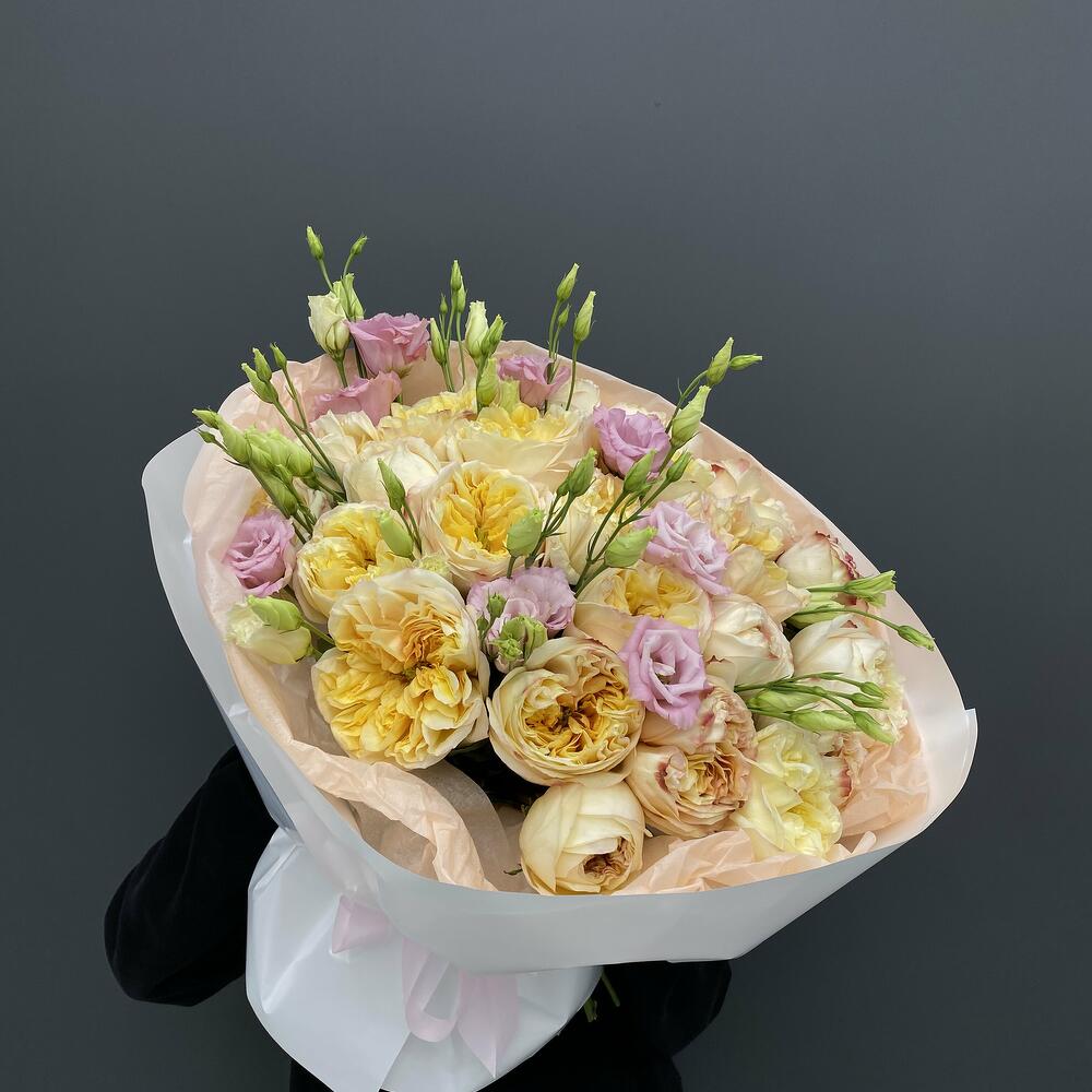 Альстромерии, Кустовые розы, Лизиантусы, Пионовидные розы, Розы, Ромашки