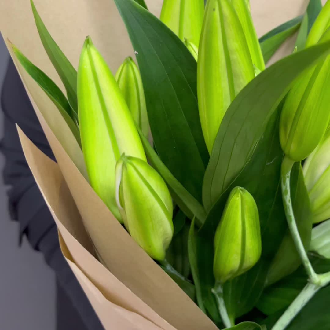 Лента атласная – 1 шт.Лилия белая – 5 шт.крафт натуральный – 1 шт.