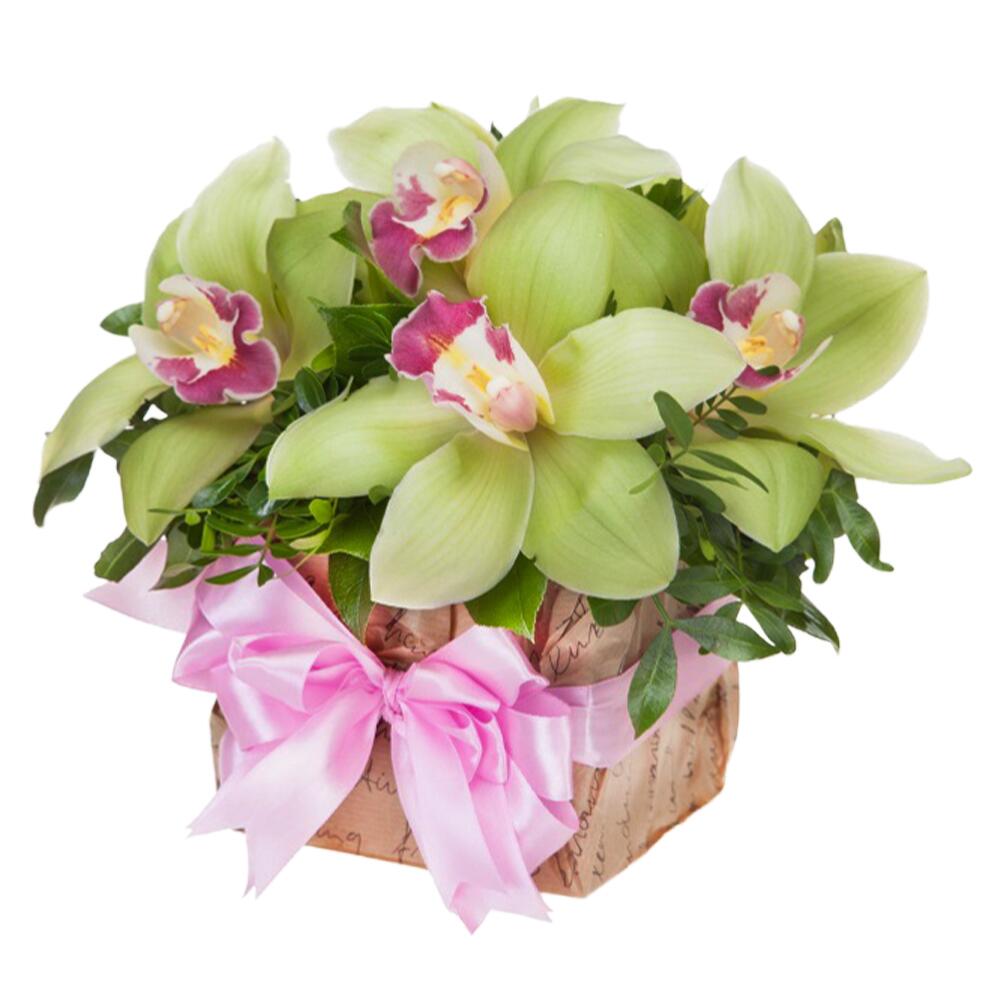 Фисташка – 1 шт.бумага крафт – 1 шт.лента атласная (розовый) – 1 шт.удлиннитель для орхидея – 5 шт.oasis классик кирпич 35 – 1 шт.орхидея цимбидиум (зеленый) – 5 шт.коробка подарочная (уменьшенная) – 1 шт.23*11*8 см (в уп. 35шт.) – 1 шт.