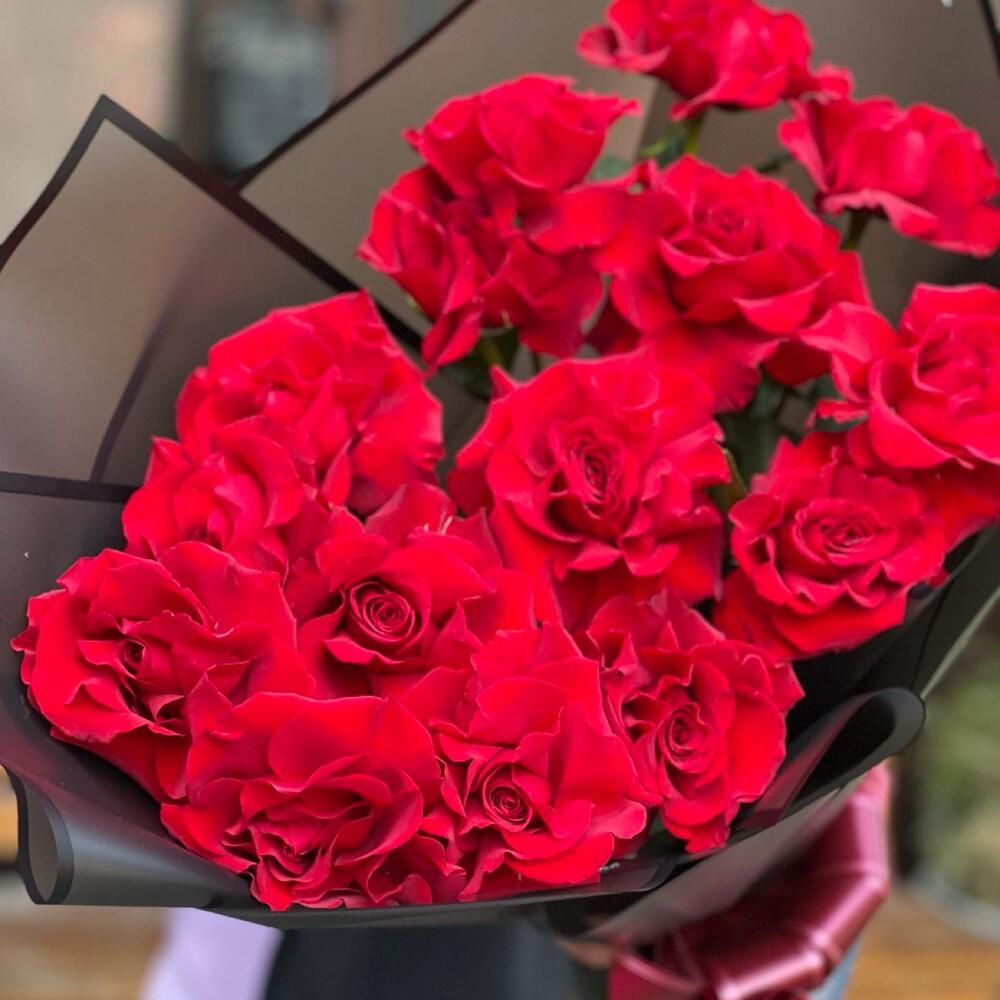 Роскошные красные розы сорта Freedom в стильном черном оформлении как отличный подарок для ваших близких ❤️