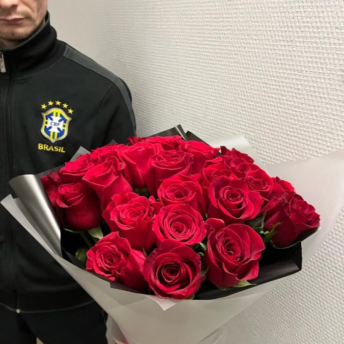розы эквадор 70 см – 25 шт.Лента атласная – 1 шт.Дизайнерская упаковка – 1 шт.