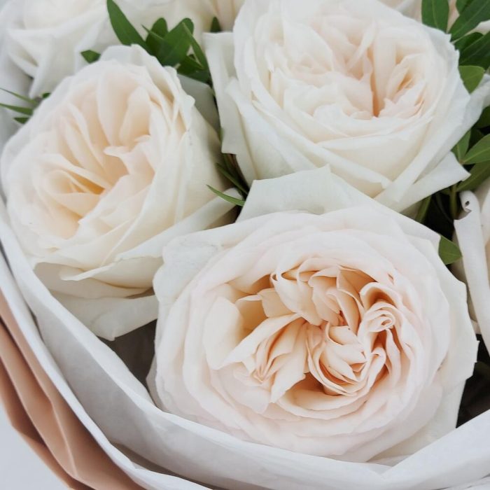 Фисташка – 3 шт.Упаковка дизайнерская – 1 шт.роза пионовидная ароматная white o’hara – 7 шт.
