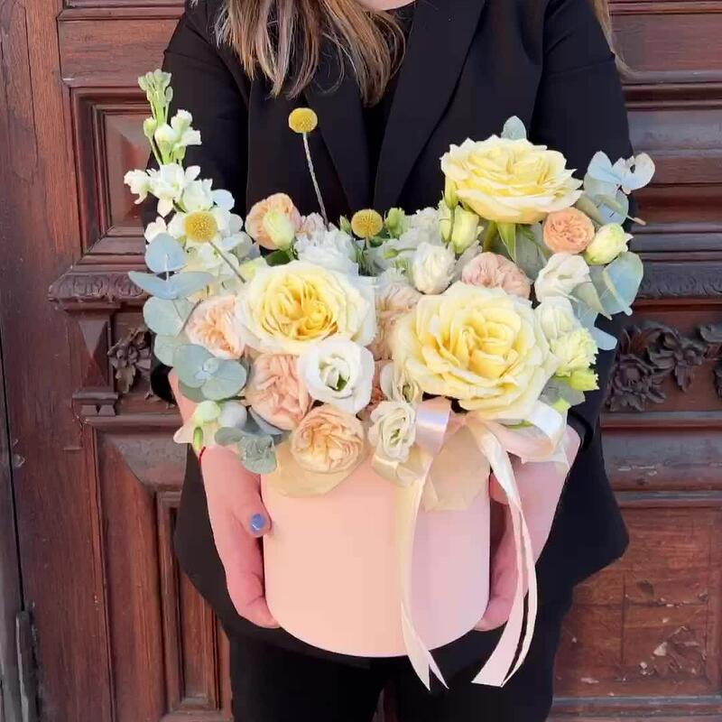 “В твоих глазах”: нежная шляпная коробка с французскими розами