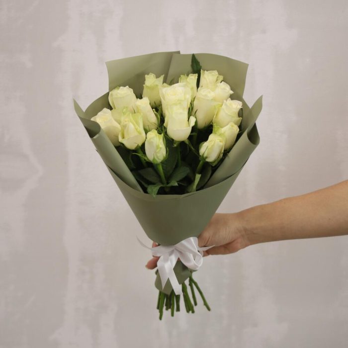 Букет из 15 белых роз 35-40 см (Кения) в стильной упаковке