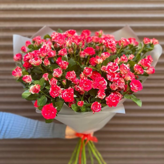 Лента – 2 шт.Пленка матовая – 3 шт.фаервокс роза кустовая – 15 шт.