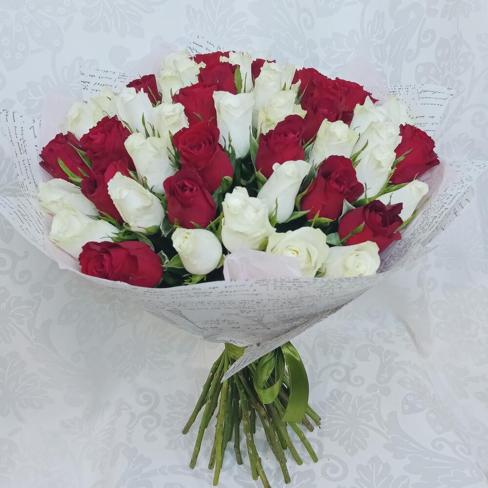 роза кения – 51 шт.Дизайнерская упаковка – 1 шт.