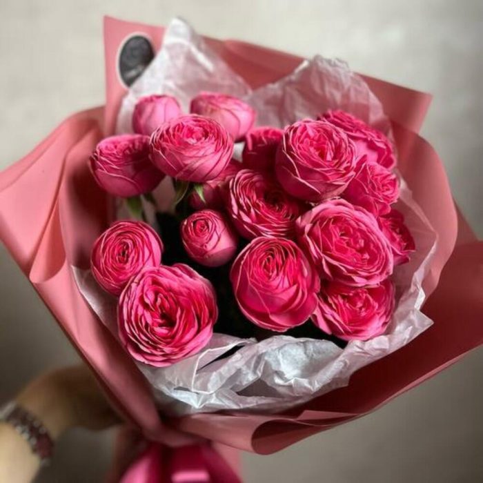 Букет из кустовой пионовидной розы “Малиновый фрэш”