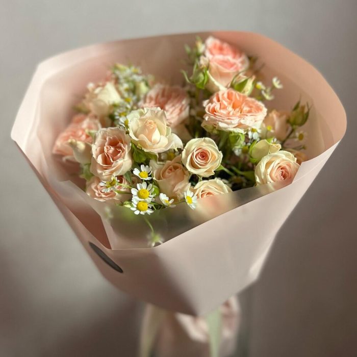 Букет из кустовой розы и ромашки