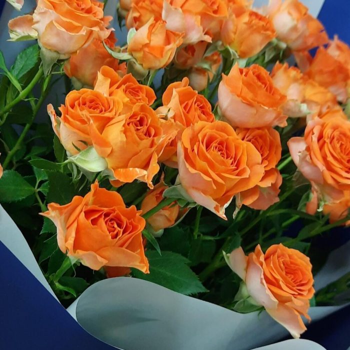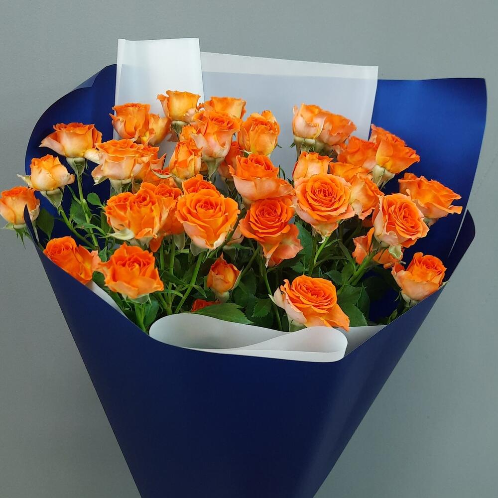 Моно букет из оранжевых роз ,25 шт в фирменной упаковке