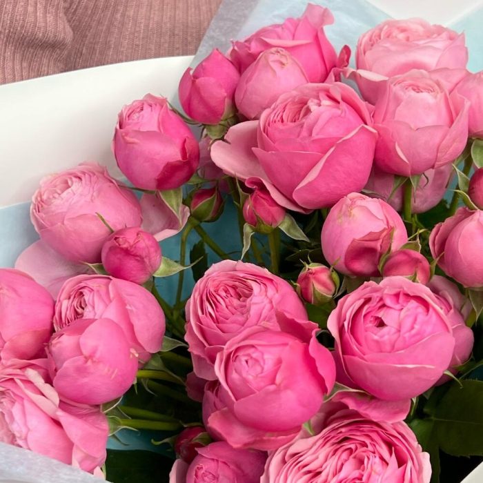 Тишью – 2 шт.Роза пионовидная кустовая – 5 шт.Пленка матовая – 2 шт.