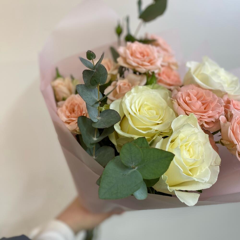 Гвоздики, Кустовые розы, Лизиантусы, Пионовидные розы, Розы
