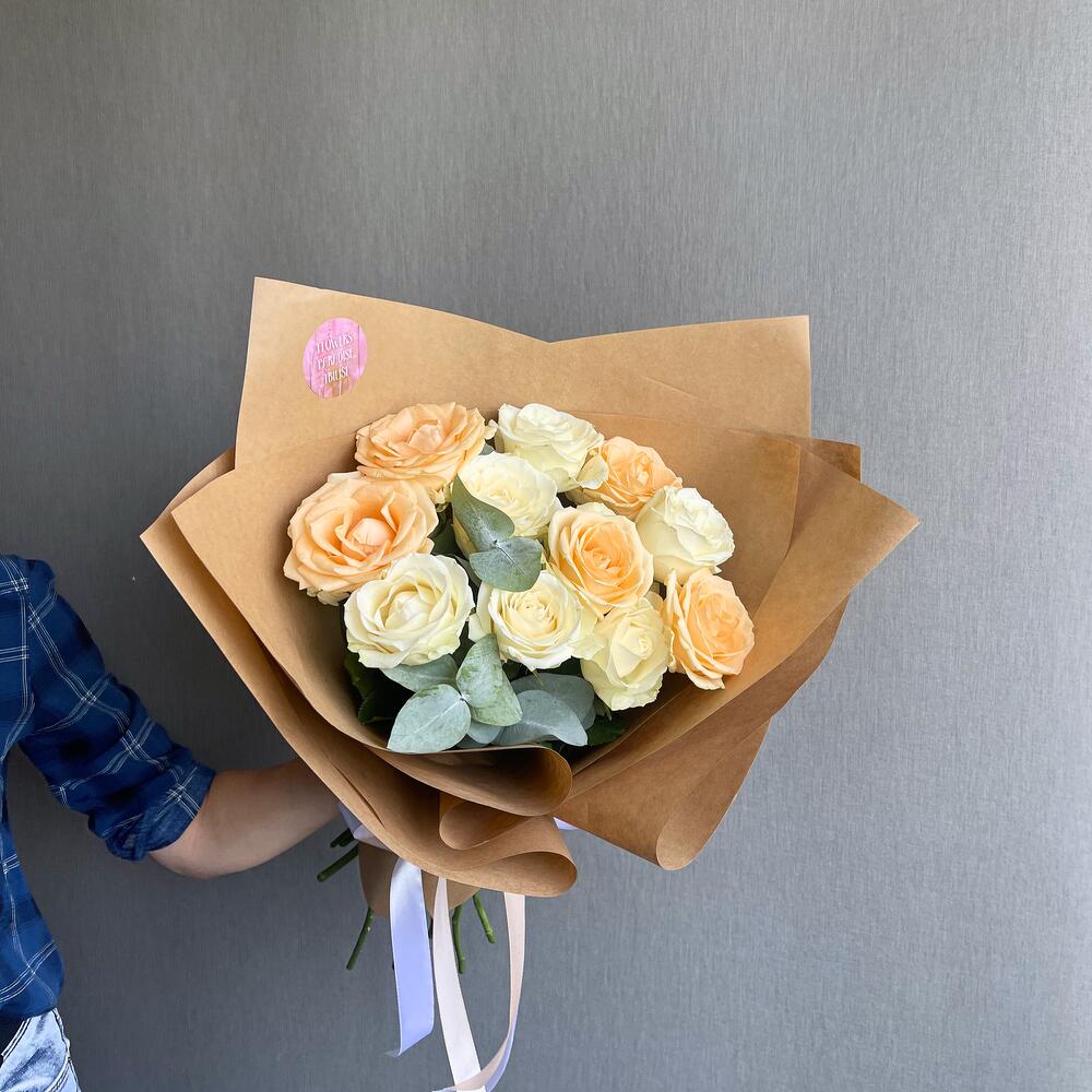 Представляем букет, состоящий из двух видов роз. Мы учитываем ваши пожелания относительно количества цветов и цветовой гаммы, чтобы создать букет, который идеально подходит к вашему вкусу и стилю.