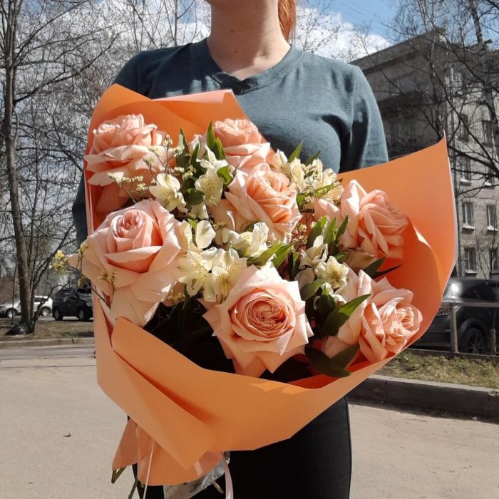 Букет персиковых французских роз