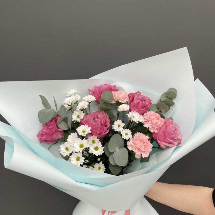 Гвоздики, Кустовые розы, Лизиантусы, Пионовидные розы, Розы