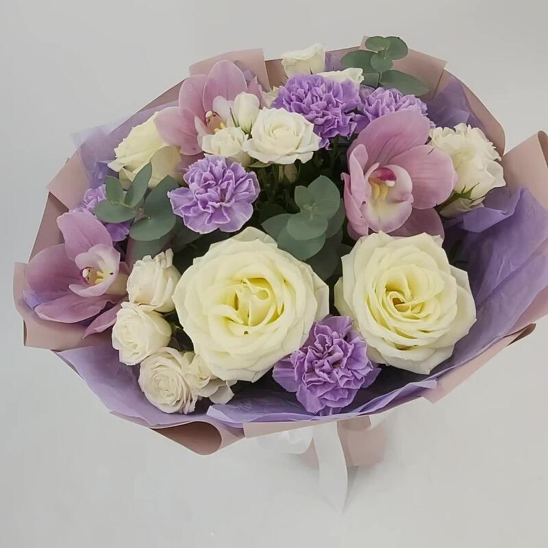Букет с орхидеями, розами и лунными гвоздиками Марсель