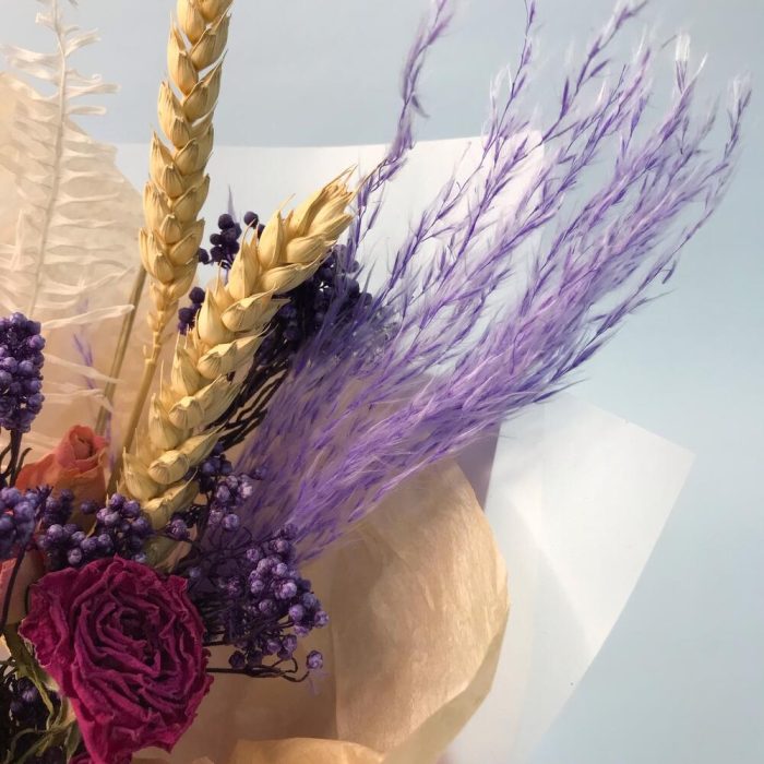 Ковыль – 1 шт.аспарагус стабилизированный – 1 шт.озотамнус стабилизированный – 2 шт.Колосья – 3 шт.роза кустовая засушенная – 2 шт.Оформление – 1 шт.