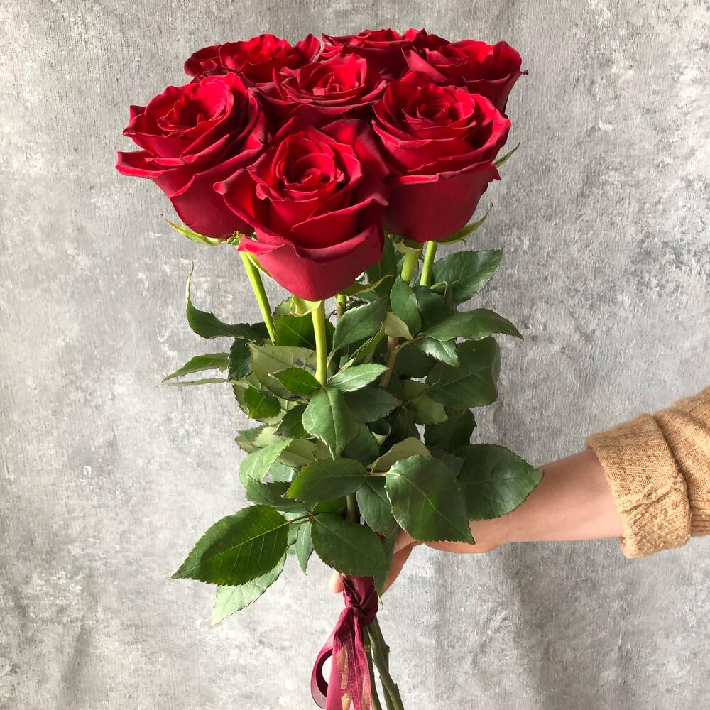 роза эксплорер 50 см эквадор – 7 шт.Лента – 1 шт.