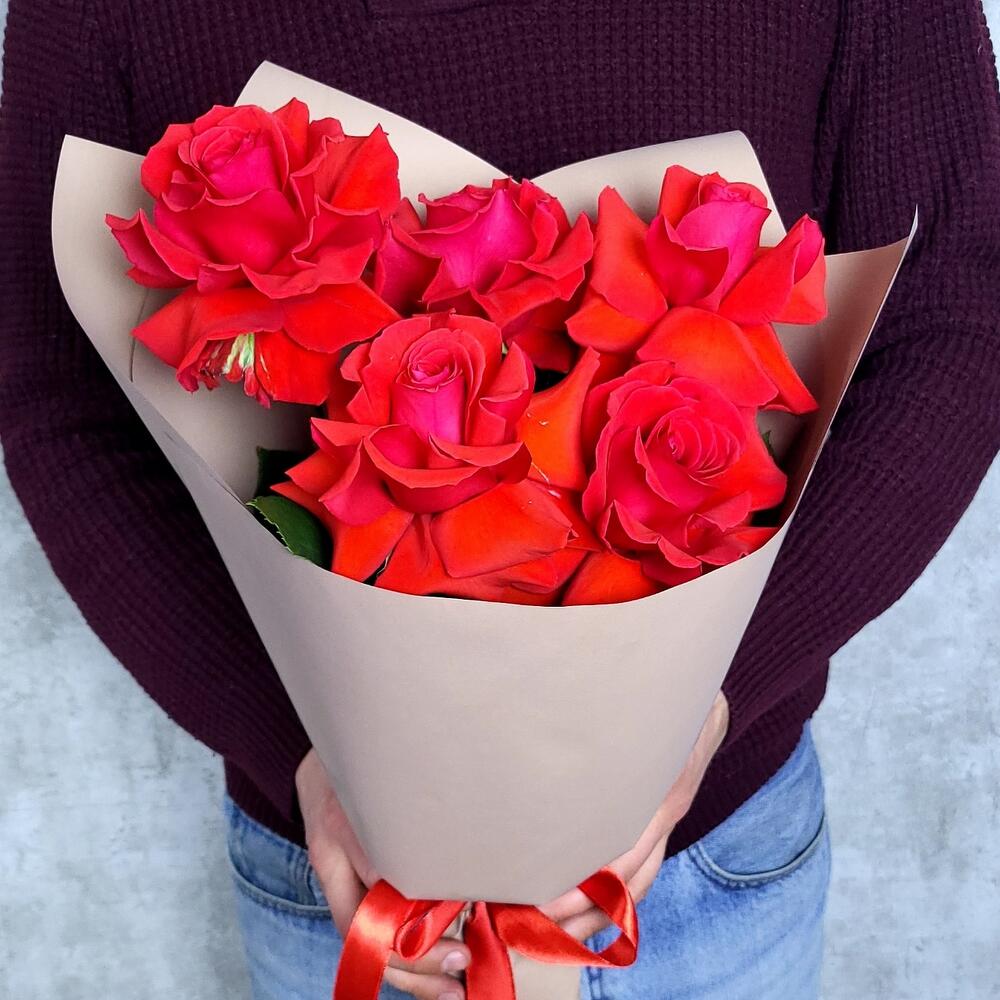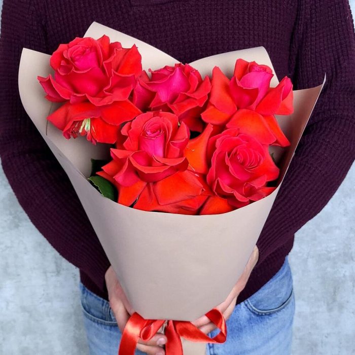 Роза красная Эквадор – 5 шт.Упаковка дизайнерская – 1 шт.