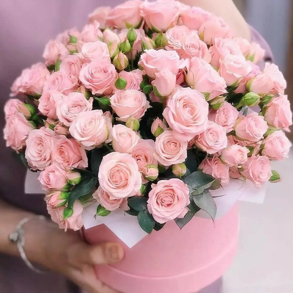 Нежная кустовая роза в шляпной коробке
