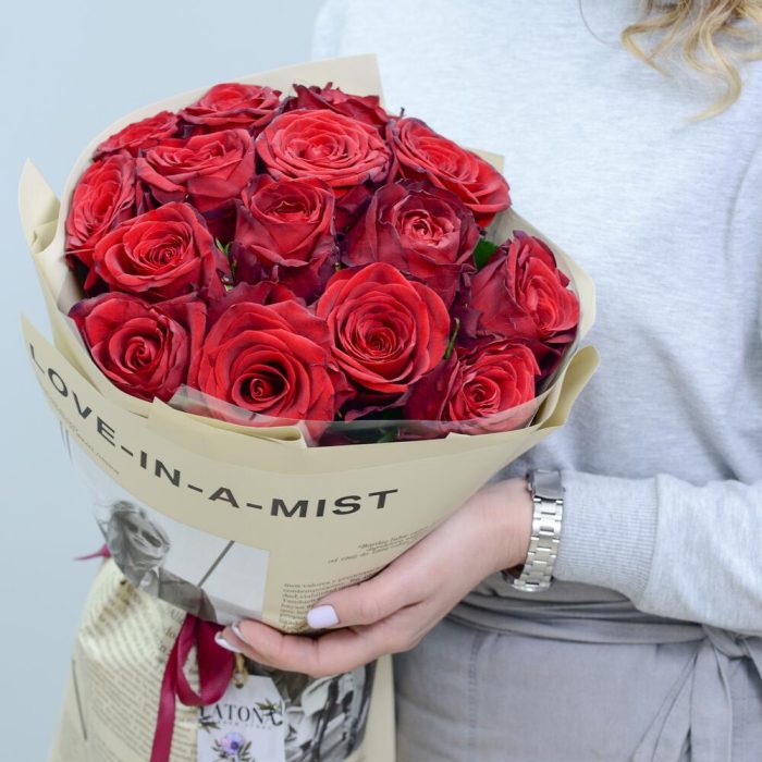 Метки: 15 роз, от 2000 до 3000 руб, Роза 70 см