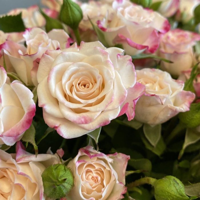 Альстромерии, Кустовые розы, Лизиантусы, Пионовидные розы, Розы, Ромашки