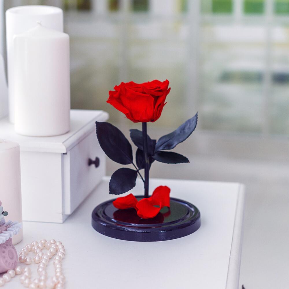 Живая роза, сохраняющая свой первозданный вид не менее 5 ЛЕТ.Создана по мотивам сказки “Красавица и чудовище”.Не требует ухода и особых условий хранения.Это то, о чем она мечтает. Позаботьтесь о подарке заранее!