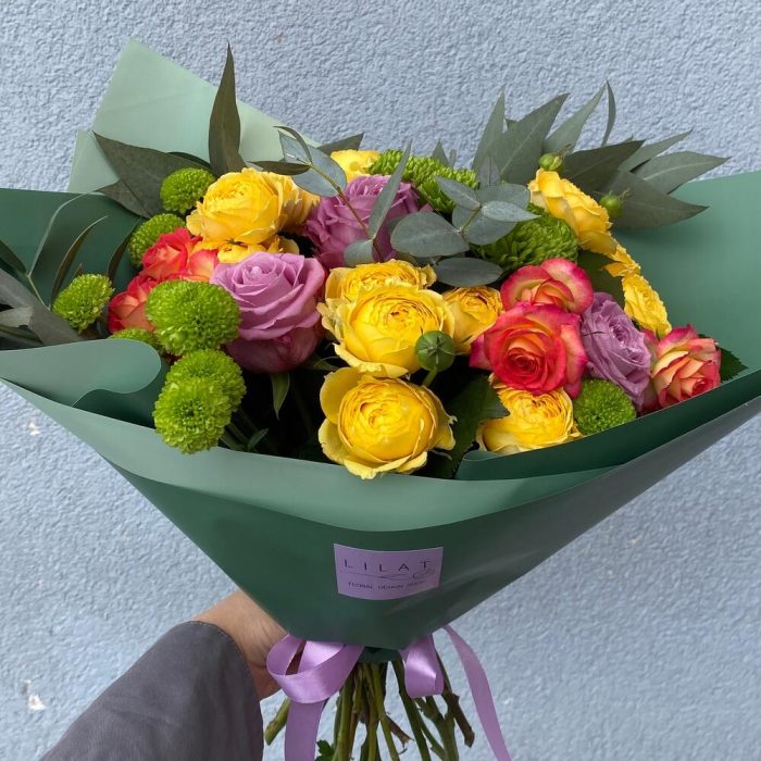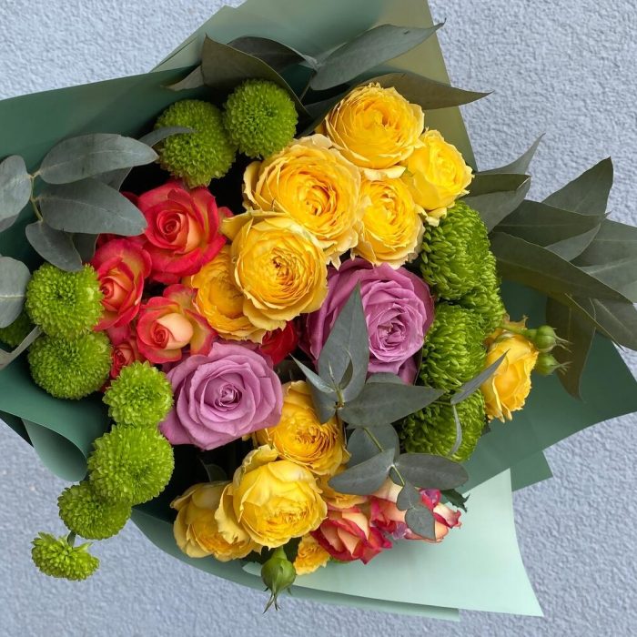 Категорий: Кустовые розы, Розы, Хризантемы, Хризантемы кустовые, Эвкалипт