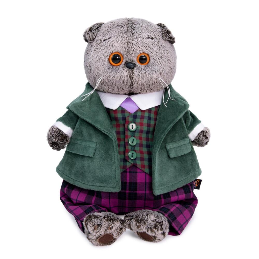 Мягкая игрушка Кот Басик в зеленом бархатном пиджаке 22см